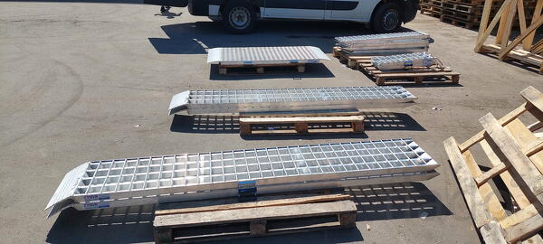 Наша компания является изготовителем алюминиевых аппарелей и прочих изделий из облегчённых сплавов разной длины, ширины и грузоподъемности.